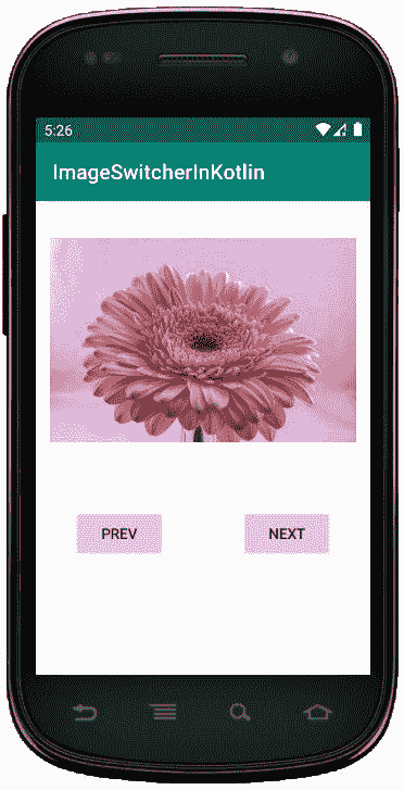 这里,我们在 Kotlin 文件中以编程方式创建 ImageSwitcher。