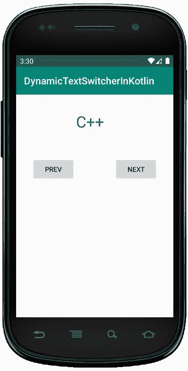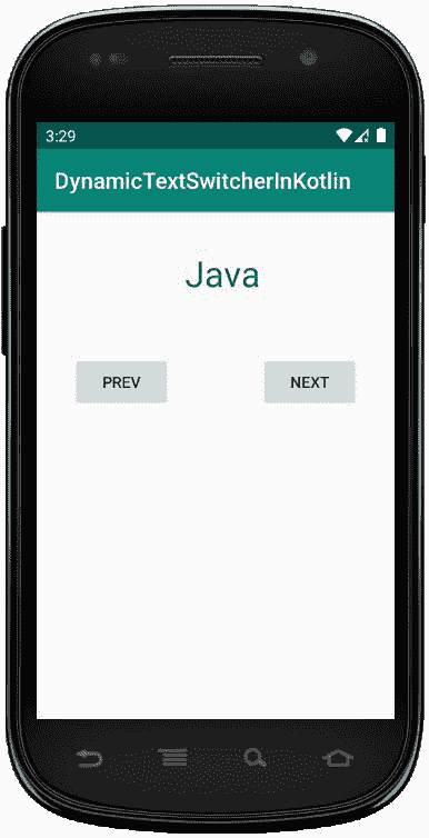 这里,我们在 Kotlin 文件中以编程方式创建 TextSwitcher。