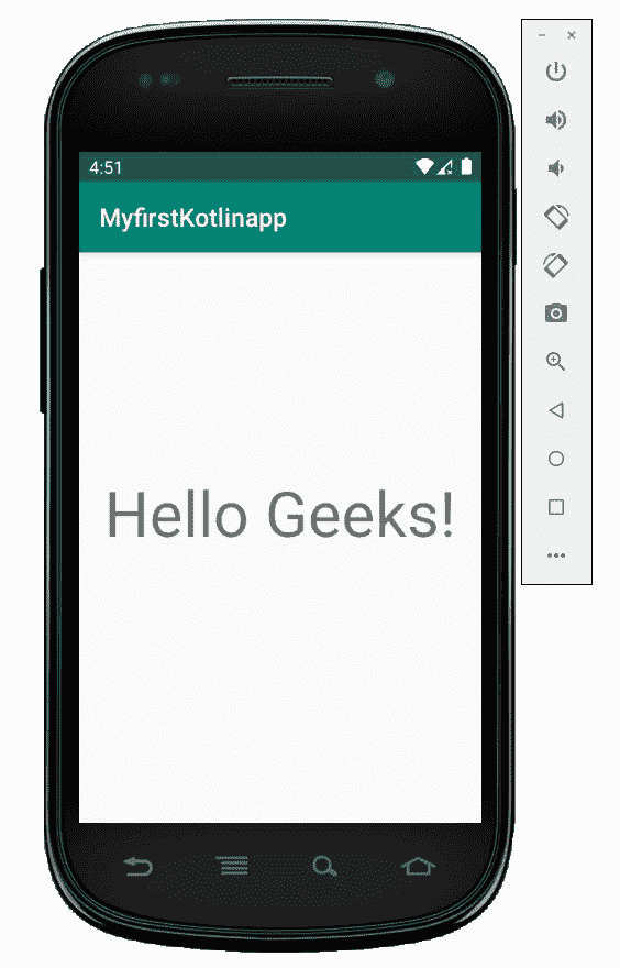 我们在 Kotlin 和 xml 文件中做了一些更改,然后可以使用模拟器运行我们的应用程序。好像是下图:-