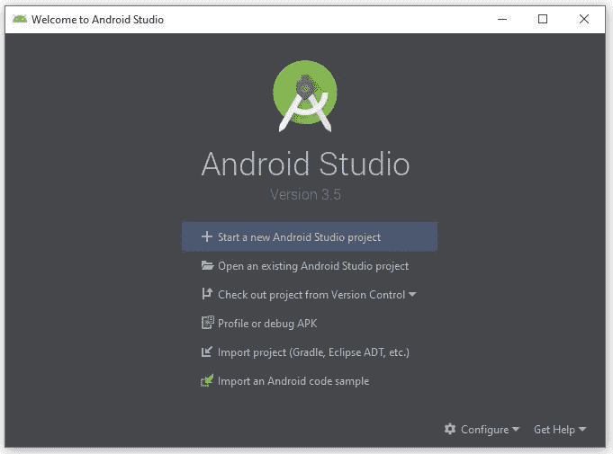 第一步:在欢迎来到安卓工作室画面中,选择开始新的安卓工作室项目。