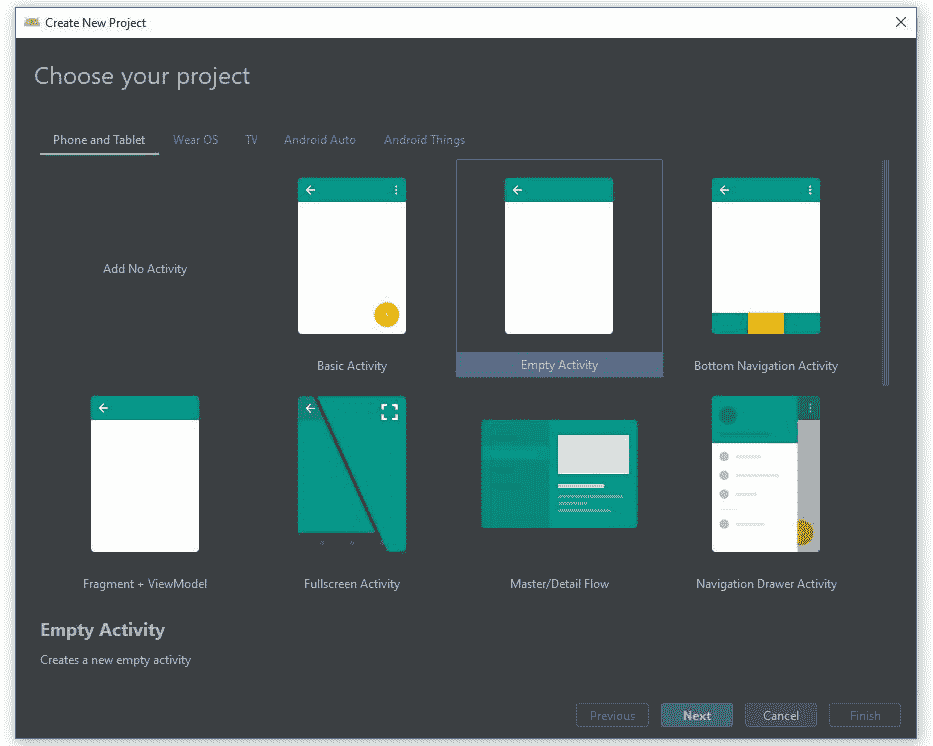 第二步:选择空活动,点击下一步按钮。