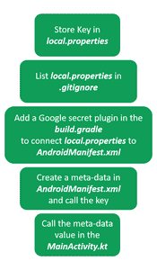 因此,当您购买或租用应用程序时,在使用它们构建应用程序时隐藏应用程序接口密钥变得至关重要。在应用程序中有几种包装它们的方法。通过本文,我们想与您分享一种在安卓工作室中构建应用程序时保护您的应用编程接口密钥的道德方式。参考下面的流程图,尝试理解这种方法。