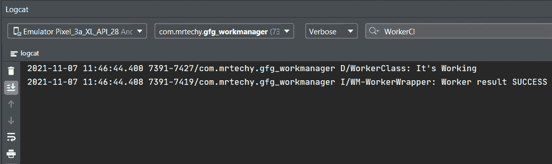 Log.d("WorkerClass","It's Working")