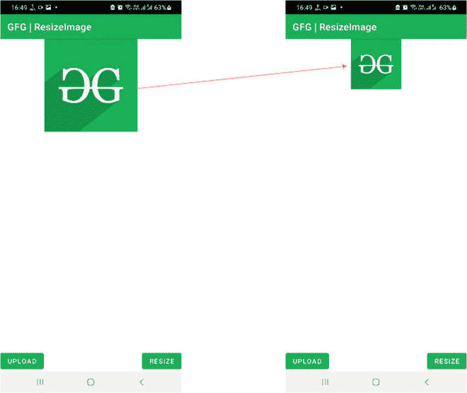 导航到应用程序> res >布局> activity_main.xml ,并将下面的代码添加到该文件中。下面是 activity_main.xml 文件的代码。添加两个按钮以上传和调整大小,添加一个图像视图以在布局中显示上传和调整大小后的图像。