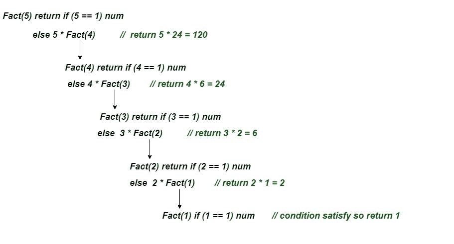 当一个函数调用它自己时,它就被称为递归函数调用。每个递归函数都应该有终止条件,否则程序执行进入无限循环并导致堆栈溢出错误。