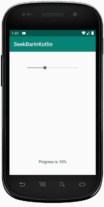 通过在 SeekBar 中拖动拇指,我们可以来回滑动,在我们使用 android:min 和android:max属性定义的最小和最大整数值之间选择一个值。分别是。