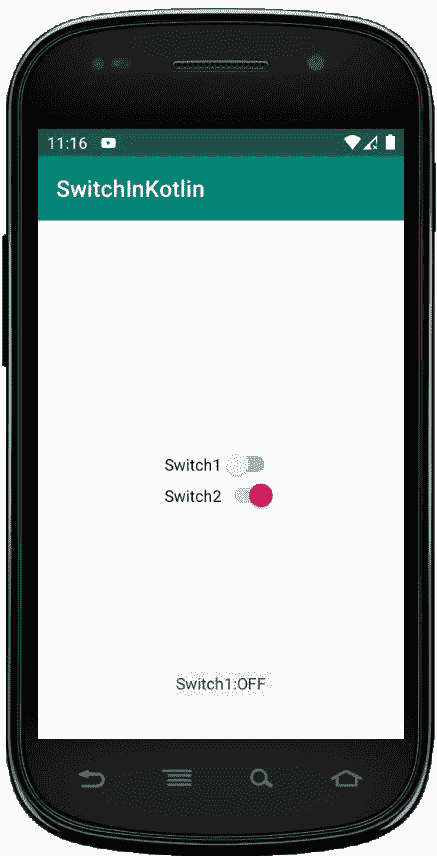 然后,将设置为 on 点击开关上的监听器,并使用 if 条件检查按钮的状态。