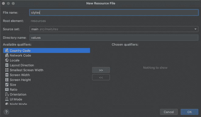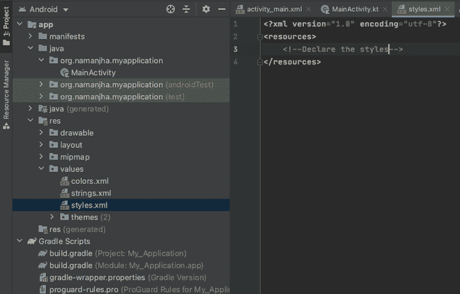 步骤 2:在 res >值文件夹中创建 styles.xml