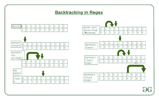正则表达式匹配的另一个重要特性是回溯,目前(需要时)所有正则非所有格表达式量词都使用回溯(用于统计所有匹配的总数,而不是默认的只匹配一次),即“”、?, "+", +?、{n,m}和{n,m}?。回溯通常在内部进行优化,但这里概述的一般原则是有效的(它是从可能性树上不成功的递归返回的)。当 Perl 试图将模式与正则表达式匹配时,它会回溯,而它之前的尝试并不成功,或者简单地说,回溯意味着存储匹配的模式以备将来使用。 例如: /。?/可能用于匹配类似于 HTML 标记的内容,如“ Bold* ”。这将推动模式的两个部分匹配完全相同的字符串,在这种情况下是“B”。