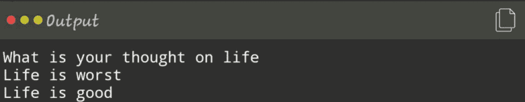 print "What is your thought on life\n"; my \(stmt = <>; print (\)stmt);