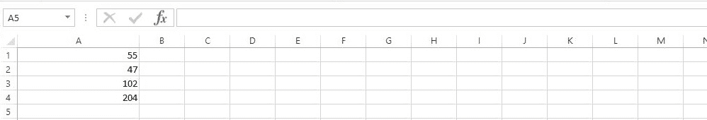 $Excelsheet->write( "A1", 5 ); $Excelsheet->write( "A2", 40 ); $Excelsheet->write( "A3", "Hello" ); $Excelsheet->write( "A4", 10 );