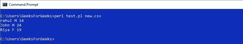 CSV 文件可用于管理企业或公司数据库的记录文件。这些文件可以很容易地在 Excel 中打开,并且可以使用任何合适的软件进行操作。Perl 还通过从文件中提取值、操作这些值并将它们恢复到文件中来支持这些“csv”文件的操作和创建。为了从特定行中提取每个值,我们将使用分割功能。