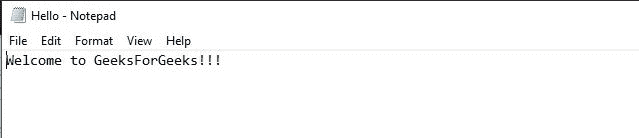 程序工作原理如下: 第一步:以写模式打开 Hello.txt 文件。 第二步:从标准输入键盘获取文本。 步骤 3: 将存储在“$a”中的字符串写入文件句柄“FH” 指向的文件中步骤 4: 关闭文件。