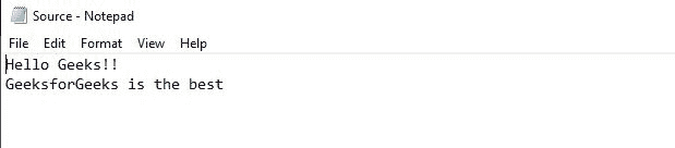 程序是这样工作的:- 第一步:以读模式打开两个文件 Source.txt,以写模式打开 Destination.txt。 步骤 2: 从 FHR 读取内容,FHR 是文件句柄读取内容,而 FHW 是文件句柄将内容写入文件。 第三步:使用打印功能复制内容。 步骤 4: 读取文件完成后,关闭 conn。