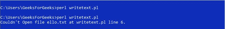 在上面的代码中,当文件存在时,它只是简单地执行,没有错误,但如果文件不存在,那么它会产生一个错误,代码终止。